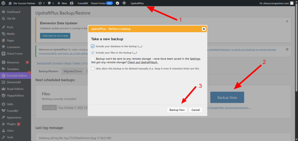 💡 Expert Note (Save Disk Space): If your hosting provider offers a daily backup or has its own robust, integrated backup system (often accessible via your cPanel or hosting dashboard), utilize that feature instead. This is often faster, more reliable, and won’t consume additional disk space on your web server.